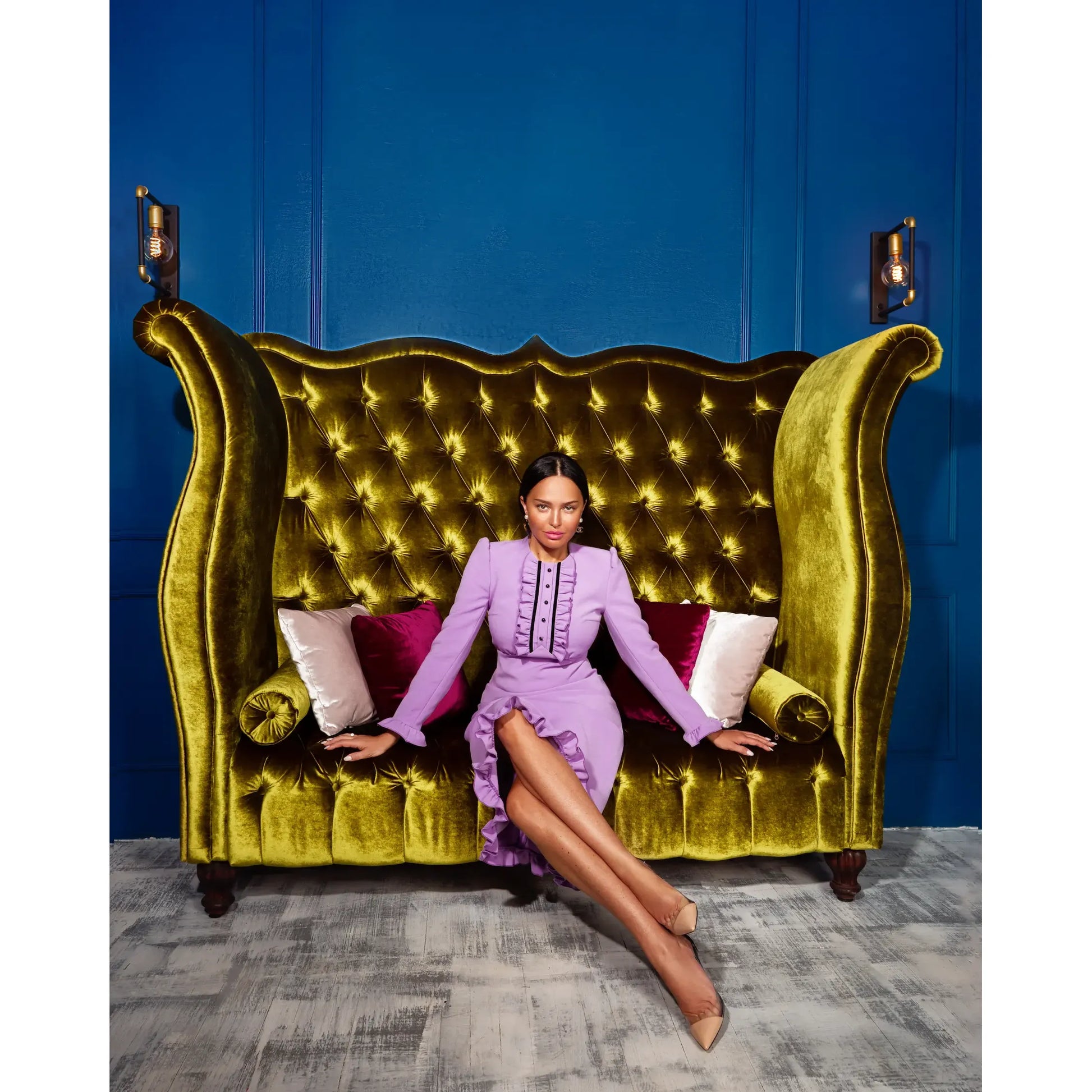 This designer dress is the perfect balance of business and leisure. Ruffles make the design all-the-more ladylike. It has gently puffed sleeves and a curved waistline before falling to a floaty midi hem. An elegant office-to-cocktails staple. Accessorize yours with pumps or ballet flats.